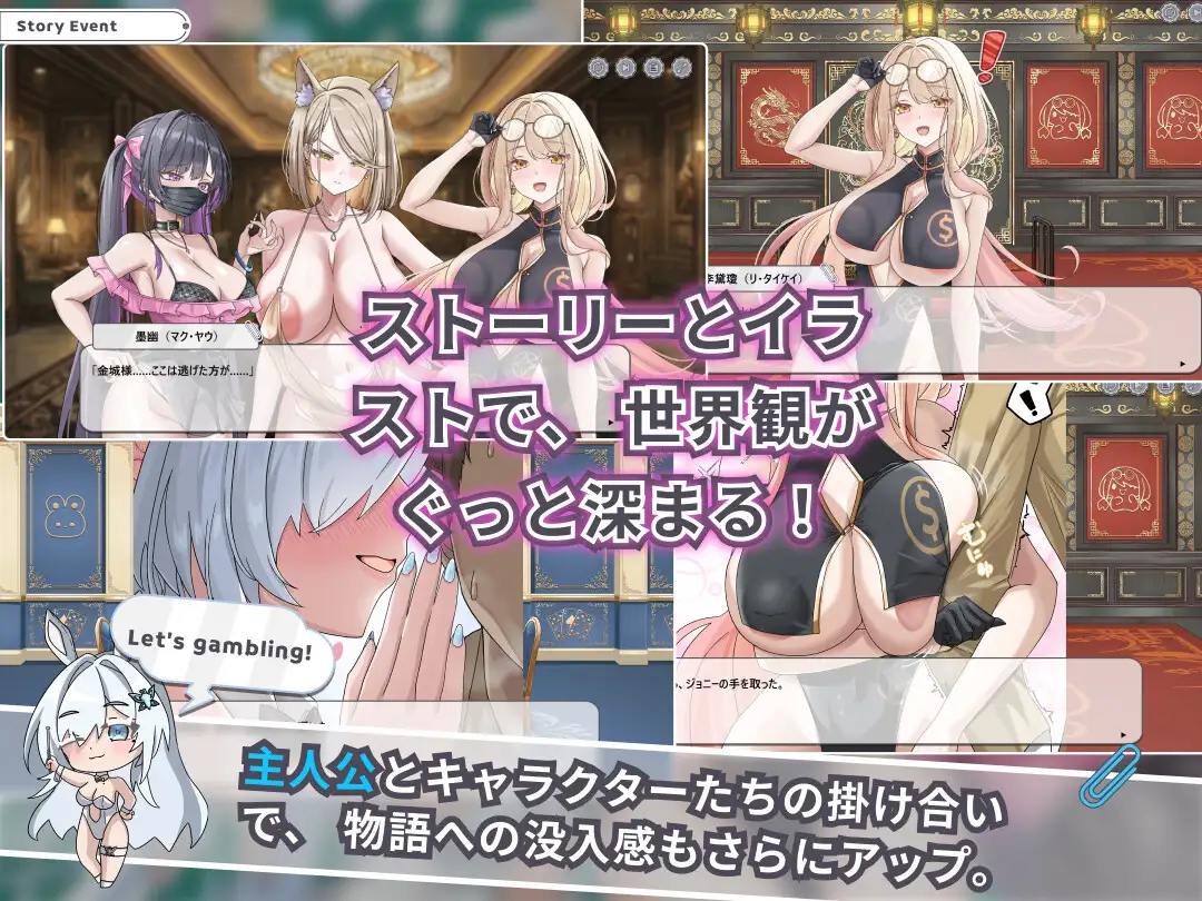 通过在小游戏中获胜来推动故事发展。随着剧情推进,与她们的关系将不再仅仅局限于“赌博”,而是向着更深的方向迈进。
