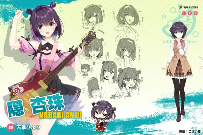 乐队主唱转学到主角的学院的女孩子。平时给人沉稳的感觉,但一旦认定某事就会勇往直前。(其实是个重度近视)隐 杏珠(隠 杏珠)