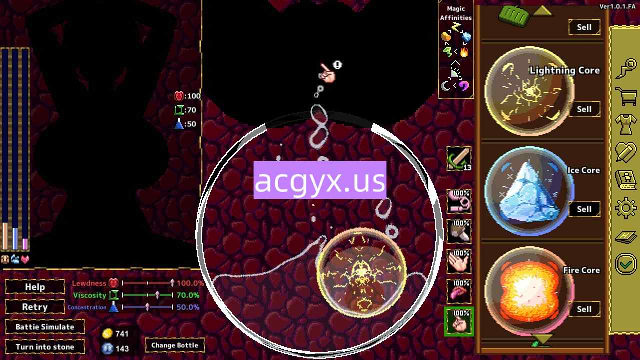 ・触摸自身时,会分泌体液滴入容器中,您可以添加魔法材料来制作魔法石,用于战斗。