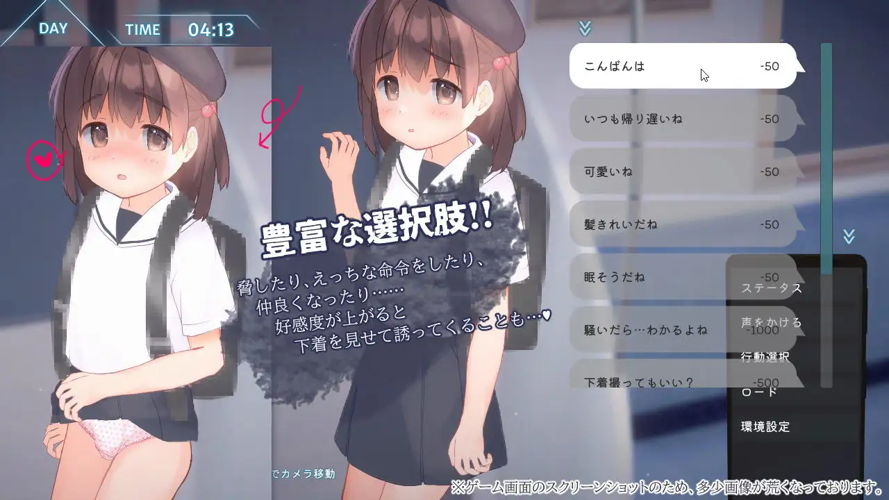 除了鼠标操作,还能通过选项和她搭话,选择穿脱衣服或命令她的行动。